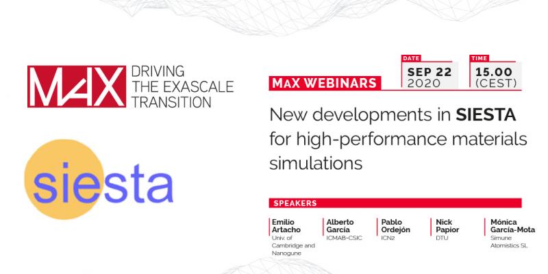 The 5th webinar of the MaX series on Flagship codes entitled “New developments in SIESTA for high-performance materials simulations” was held last 22nd September, focusing
